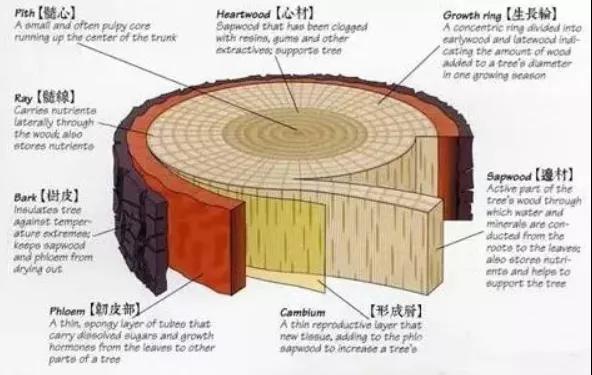 在實木家具中,木材是不可或缺的重要部分,工程中所用的木材主要取自樹木的樹干部分。木材因取得和加工容易,自古以來就是一種主要的建筑材料。那么,對于木材的專業術語,你知道多少呢?每次在購買的時候都不清楚這些專業知識,今天香柏世家實木家具帶您了解一下: